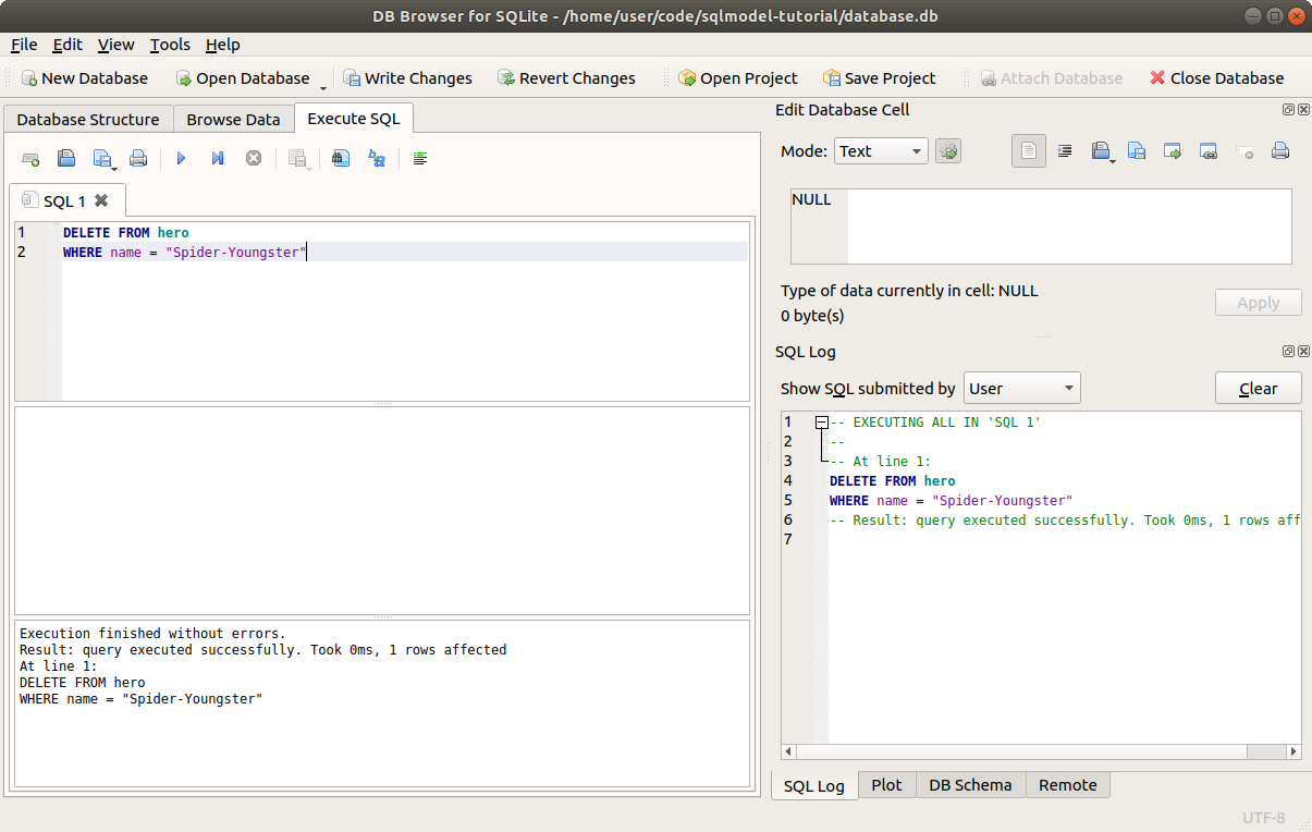 Now let's delete with SQLModel.